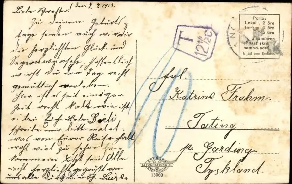 Zustand, siehe Scan, gelaufen, 1913 - ca 14 cm X 9 cm