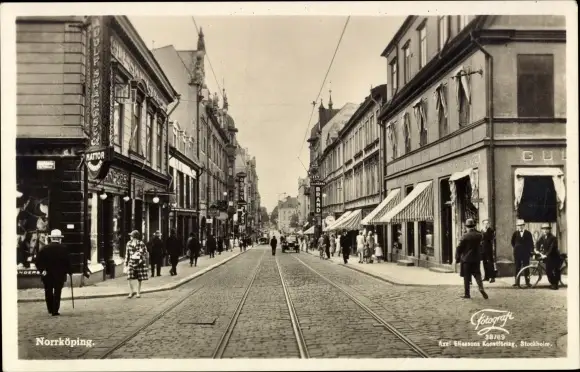Ak Norrköping Schweden, Straßenpartie, Geschäfte