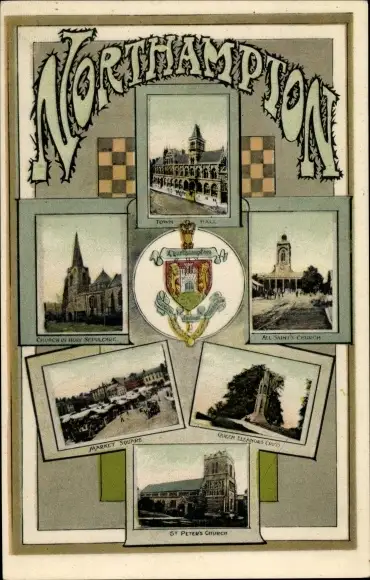 Ak Northampton, Town Hall, St. Peters Church, Market Square