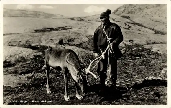 Ak Norwegen, Bauer mit Rentier