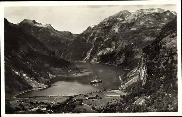 Ak Norwegen, Utsigt over Geirangerfjorden, Dampfschiff im Fjord