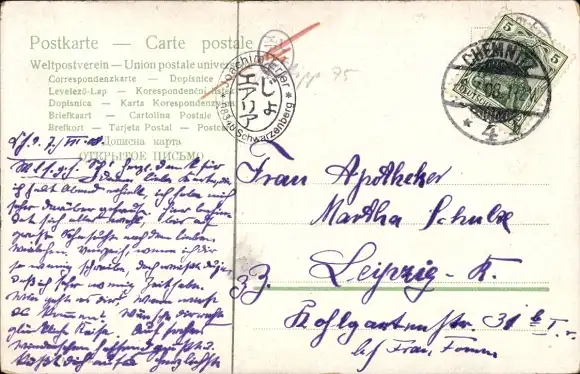 Zustand, siehe Scan, gelaufen, 1908 - ca 14 cm X 9 cm