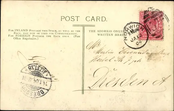 Zustand, siehe Scan, gelaufen, 1904 - ca 14 cm X 9 cm