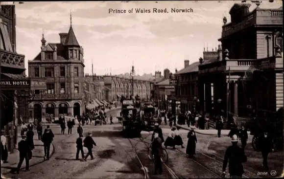 Ak Norwich Norfolk England, Prince of Wales Road, Straßenbahn