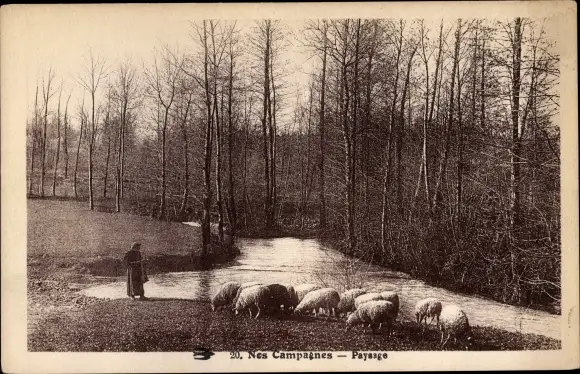 Ak Nos Campagnes, Paysage, Schäfer mit Schafherde