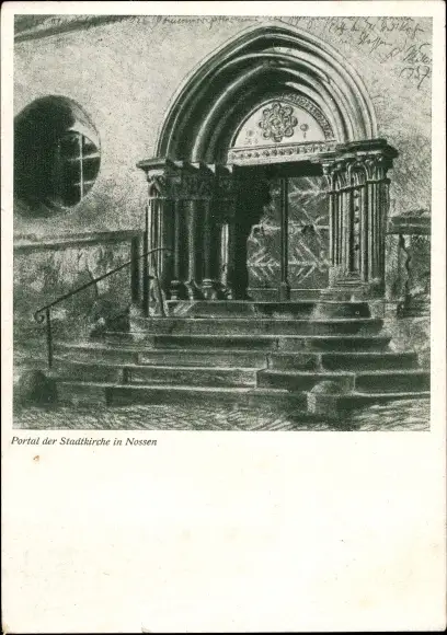 Ak Nossen, Portal der Stadtkirche, Säulen, Treppe