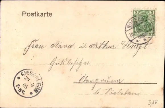 Zustand, siehe Scan, gelaufen, 1905 - ca 14 cm X 9 cm