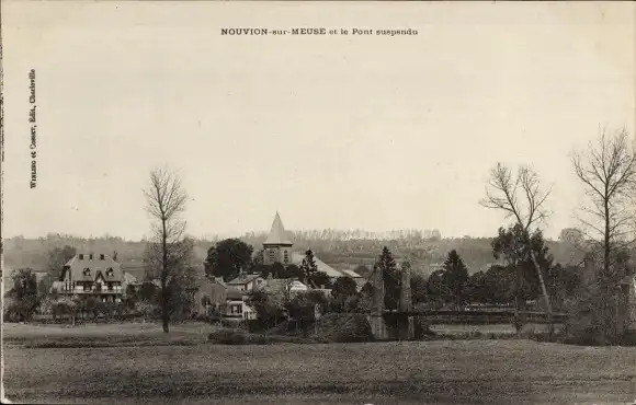 Ak Nouvion sur Meuse Ardennes, Pont suspendu