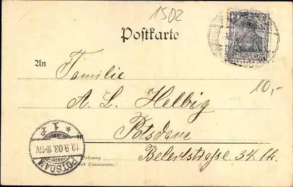 Zustand, siehe Scan, gelaufen, 1903 - ca 14 cm X 9 cm