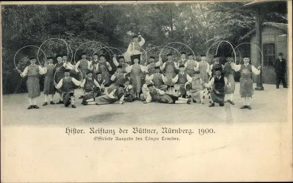Ak Nürnberg, Histor. Reiftanz der Büttner, 1900, Tänzer in Trachten