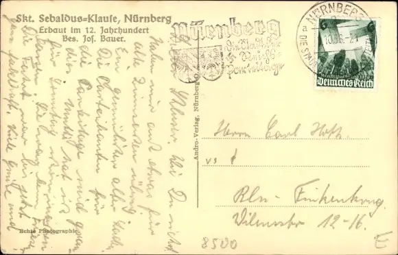 Ak Nürnberg, Künstlerstube in der Skt. Sebaldusklause, Jos. Bauer