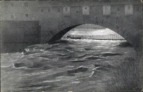 Ansichtskarte, Postkarte, Hochwasser, Überschwemmung, Inondations, Flood, Feuer