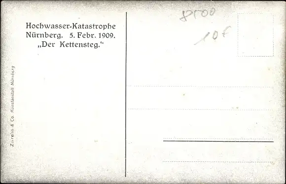 Ak Nürnberg in Mittelfranken, Der Kettensteg, 05.02.1909, Hochwasser Katastrophe