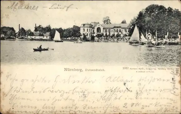 Ak Nürnberg in Mittelfranken, Dutzendteich, Boote, Ruderer