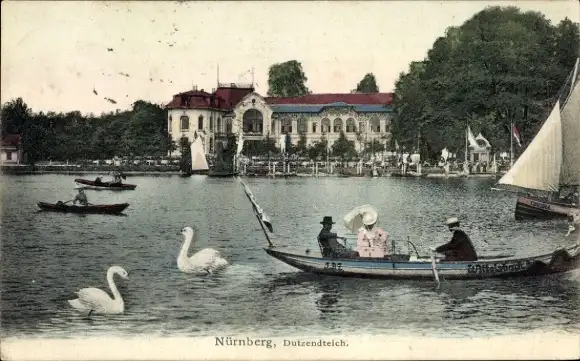 Ak Nürnberg in Mittelfranken, Dutzendteich, Ruderboote