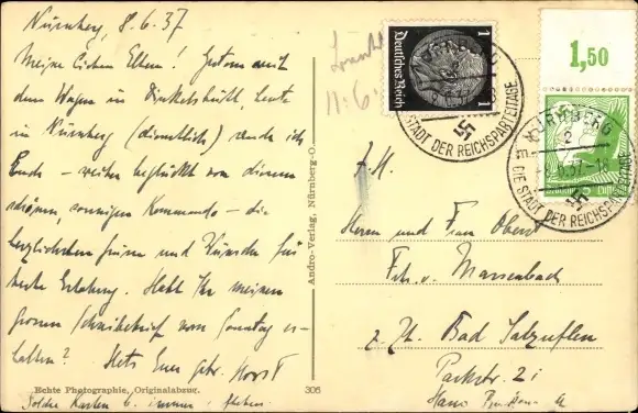 Zustand, siehe Scan, gelaufen, 1937 - ca 14 cm X 9 cm