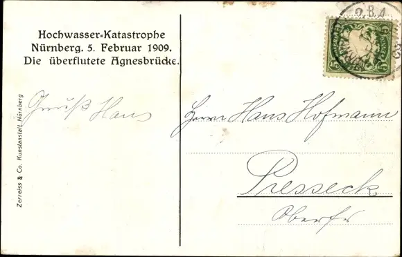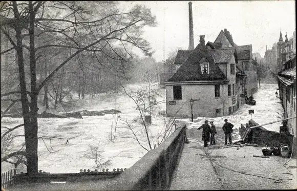 Ak Nürnberg in Mittelfranken, Hochwasser-Katastrophe 1909, Die überflutete Agnesbrücke