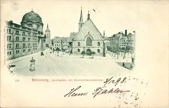 Ak Nürnberg in Mittelfranken, Jacobsplatz mit Deutschhauskaserne