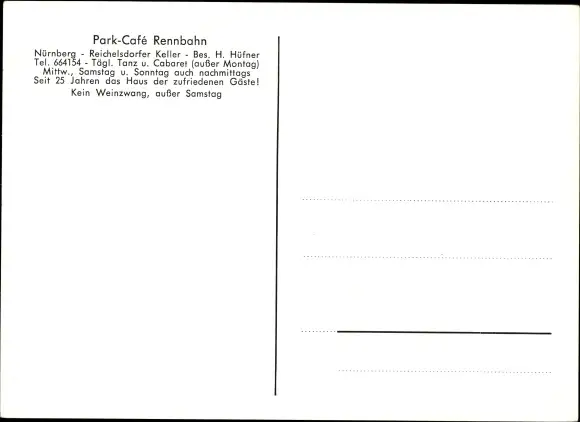 Ak Nürnberg in Mittelfranken, Park Cafe Rennbahn, Reichsdorfer Keller