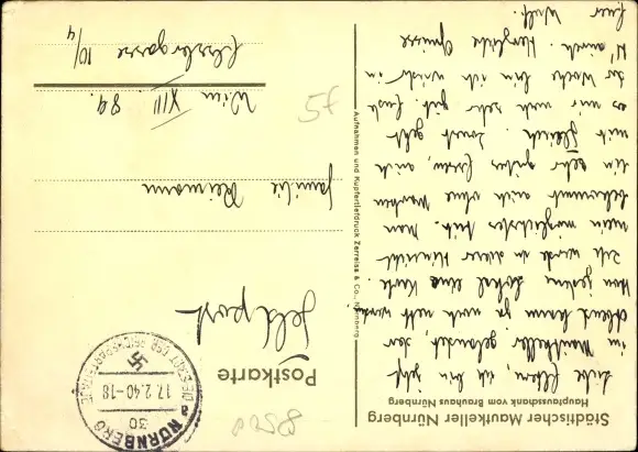 Zustand, siehe Scan, gelaufen, 1940 - ca 11 cm X 15 cm