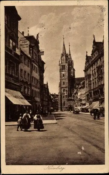 Ansichtskarte, Postkarte, Kirche, Stadtkirche, Gotteshaus, Sakralbau, Nürnberg