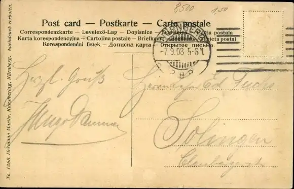 Zustand, siehe Scan, gelaufen, 1908 - ca 9 cm X 14 cm