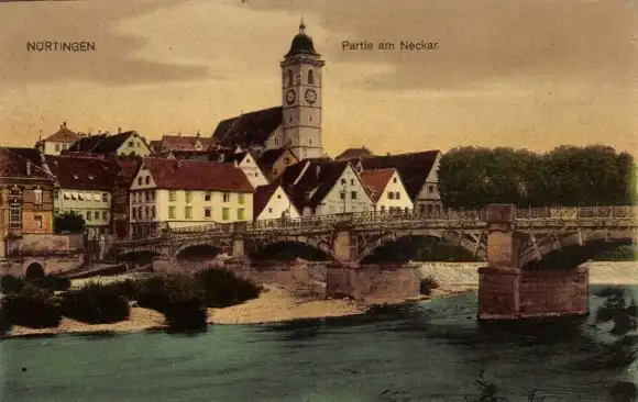 Ak Nürtingen am Neckar Württemberg, Teilansicht, Brücke, Kirche