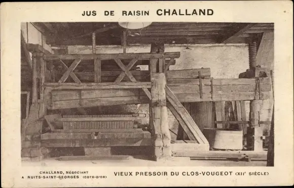 Ak Nuits Saint Georges Côte d’Or, Vieux pressoir du Clos de Vougeot, Jus de raisin Challand