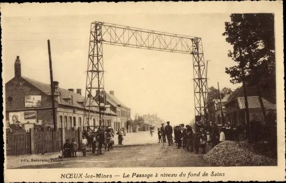 Ak Nœux Noeux les Mines Pas de Calais, Le Passage a niveau du fond de Sains