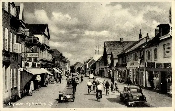 Ak Nyköbing Nykøbing Falster Dänemark, Algade, Strassenansicht