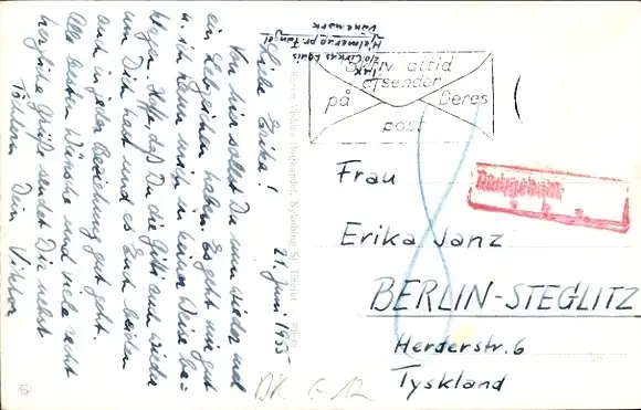 Zustand, siehe Scan, gelaufen, 1955 - ca 14 cm X 9 cm