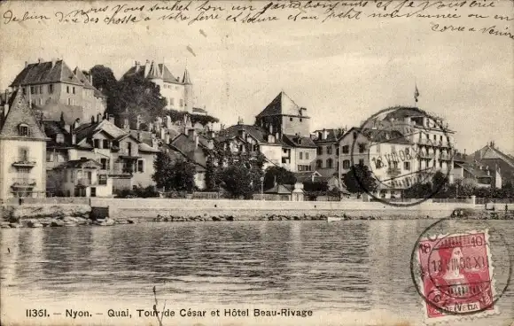 Ak Nyon Kanton Waadt, Quay, Tour de Cesar, Hotel Beau-Rivage