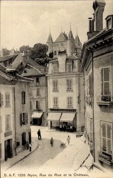Ak Nyon, Kanton Waadt, Rue de Rive und das Schloss