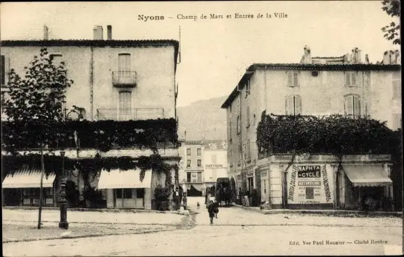 Ak Nyons Drôme, Champ de Mars et Entree de la Ville