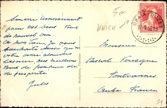 Ak Obaix Buzet Hennegau Wallonien, Kirche, Denkmal