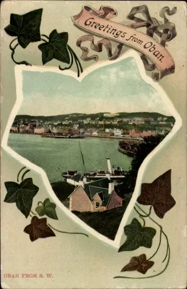 Ak Oban Schottland, Ortsansicht, Hafen, Efeu