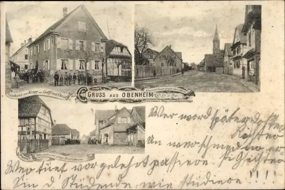 Ak Obenheim Elsass Bas Rhin, Gasthaus zur Krone, Kirche, Straßenpartie