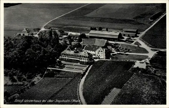 Ak Ober Ingelheim am Rhein, Fliegeraufnahme