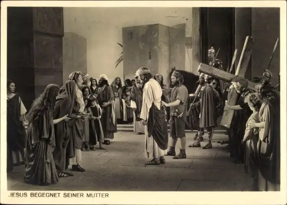 Ak Oberammergau in Oberbayern, Jubiläums-Passionsspiele 1934, Jesus begegnet seiner Mutter