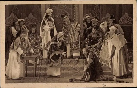 Ak Oberammergau in Oberbayern, Passionsspiele 1922, Judas vor dem Synedrium