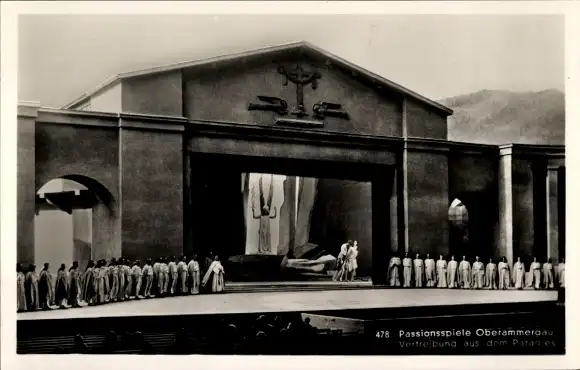 Ak Oberammergau in Oberbayern, Passionsspiele, Vertreibung aus Paradies