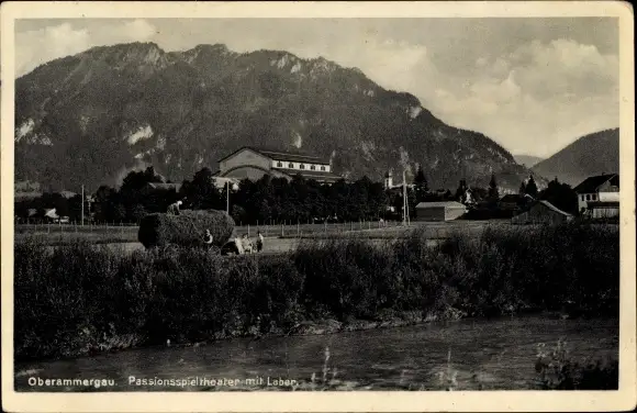Ak Oberammergau in Oberbayern, Passionsspieltheatermit Laber, Teilansicht, Bauern