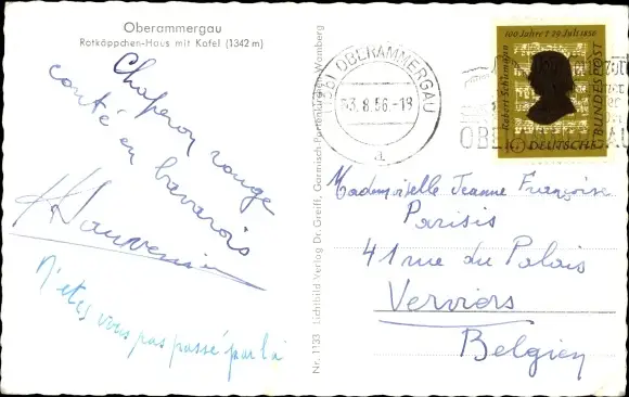 Zustand, siehe Scan, gelaufen, 1956 - ca 14 cm X 9 cm