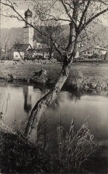 Ak Oberammergau in Oberbayern, Teilansicht, Ammer