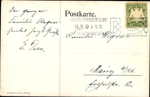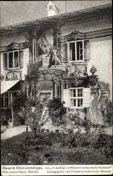 Ak Oberammergau in Oberbayern, Vorderansicht eines Hauses, Wandgemälde