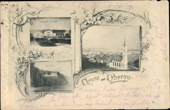 Ak Oberau Oberbayern, Kirche, Gasthof zur Post
