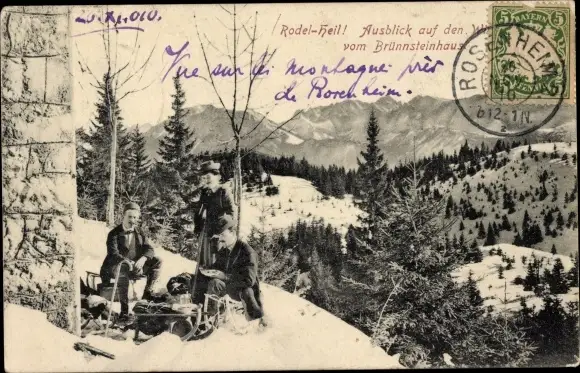 Ak Oberaudorf in Oberbayern, Brünnsteinhaus, Schlittenfahrer