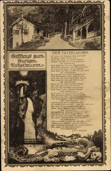 Ak Oberaudorf in Oberbayern, Wasserfall am Tatzelwurm, Gasthaus zum Tatzelwurm, Gedicht