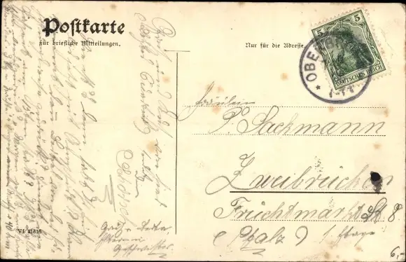 gelaufen 1908, Eckknick links oben, sonst guter Zustand
