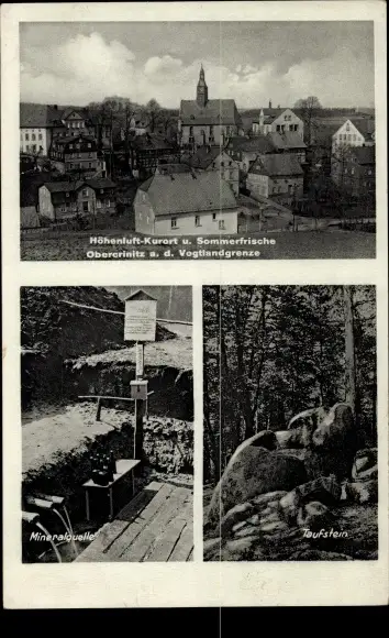 Ak Obercrinitz Crinitzberg in Sachsen, Panorama, Mineralquelle, Taufstein